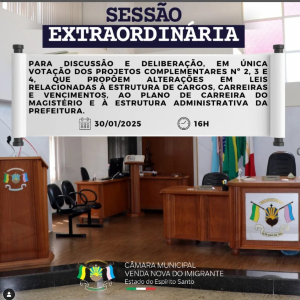 Hoje as 16h, a Câmara Municipal realizará um Sessão Extraordinária para a análise de importantes Projetos Complementares, onde irão discutir e votar sobre as seguintes pautas: